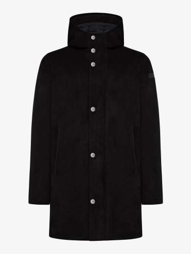 Il design eskimo di lunghezza trequarti è impreziosito dal look traslucido del pregiato eco suede a effetto nabuk, particolarmente morbido al tatto. La costruzione interamente termonastrata del tessuto a membrana traspirante presenta il caldo comfort dell'imbottitura in morbida e leggera piuma d'anatra 90/10. Questa è racchiusa nei canali tubici dell'innovativo sistema Floating Shield, che consente un fit impeccabilmente diritto al capospalla. Sul davanti, la patta con bottoni metallici a pressione nasconde alla vista la zip integrale metallica, che chiude il colletto alto e protettivo con il cappuccio fisso e imbottito. Le ampie tasche laterali a pistagna sono dotate nella destra del pratico tiretto elastico. L'interno presenta un taschino con zip invisibile, ravvivato dal doppio filetto arancione fluo e dall'iconica tag a cuore "Made with love, designed in Tuscany". Il logo a microiniezione nero sulla manica sinistra è la nota distintiva di un capo dall'eleganza ricercata, adatto a ogni circostanza.