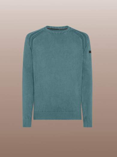 COTTON THECNO WASH ROUND KNIT.La maglia girocollo in morbido cotone si distingue per il il design distintivo delle maniche lunghe a sella e per la tridimensionalità della lavorazione a coste inglesi del colletto, dei polsi e del fondo che ne perfezionano il fit regolare e confortevole. La creazione per la mezza stagione è disponibile in un'ampia palette di colori a effetto délavé, impreziositi dal filetto arancio fluo sul fondo posteriore e dal logo a microiniezione nero sulla manica sinistra. La creazione si presta a una serie di look casual di grande sportività su un pantalone cinque tasche, o cargo.